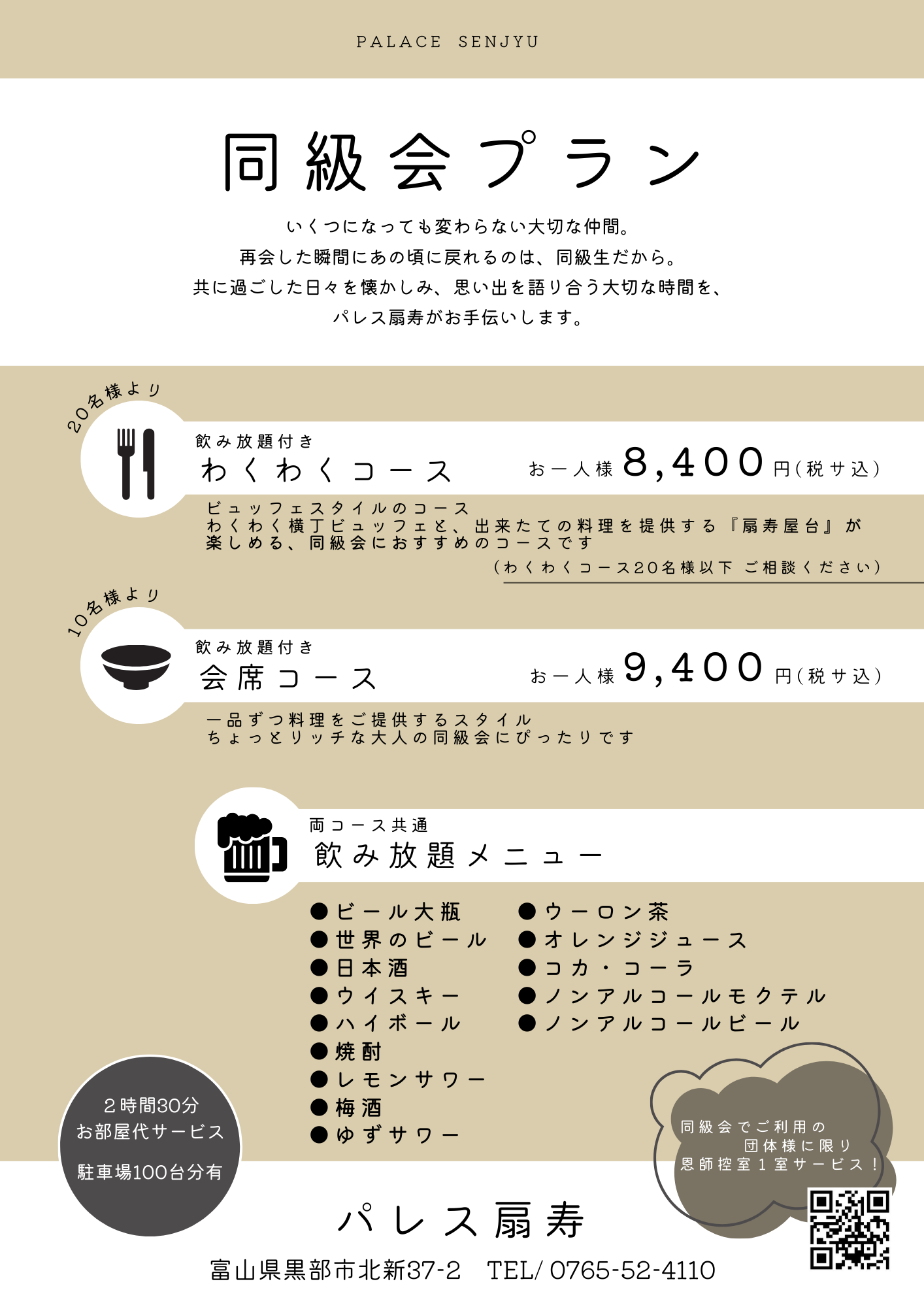 ・同級会プラン限定で、恩師控室(1室)をサービスいたします